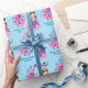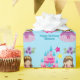 Ein hübsches personalisiertes Geburtstagsgeschenk der Prinzessin mit einem hübschen kleinen Mädchen in einem Queen-Ball-Gewand mit rosa Bögen, die vor einer rosa und eisblauen Burg stehend sind. Niedliche Geschenkpackung für ein kleines Mädchen. Fügen Sie den Namen Ihres Kindes unter den Schlossstufen dieses Märchendesigns.
