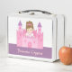 Eine kleine Prinzessin-Lunchbox für Ihre süße Tochter! Das Lunchbox-Design kommt mit einer Prinzessin, die ein weißes und ein rosa Tiara trägt, die inmitten eines rosa Pappschlosses steht. Farbtafel von süß rosa und lila, die in einer Märchenform an die Königtümer passen. Personalisieren Sie Ihre Daten mit dem Namen des Kindes.