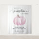 Niedliches Babyduschbändchen-Begrüßungsschild und Foto-Prop mit einer pastellrosa Kürbis Wasserfarbe und "A Sweet Little Pumpkin Is On Your Way" in einer Mischung aus grauer Typografie und einem stilvollen Drehbuch mit Wimpern. Persönlich mit dem Namen der künftigen Mutter und dem Datum der Dusche.