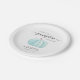 Niedliche Teller für Ihre Babydusche mit "A Sweet Little Pumpkin Is On Your Way" in schlichter grauer Typografie und einem stylischen Drehbuch und einer pastellblauen Wasserfarbe eines Kürbis.