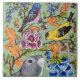 Eines meiner beliebtesten Designs, ein niedliches, pudgy graues Hasen untersucht einen farbenfrohen, jakobskanischen - inspirierten Blumengarten. Es gibt auch zwei kleine Vögel und eine Schnecke! Das Wandgemälde wird als zwei separate Fliesen verkauft, in der oberen und unteren Hälfte, mit mehreren weichen Hintergrundfarben. Dieses Wandgemälde wäre in jeder Kacheleinstellung niedlich und wird eine Touch von Farbe und Laune hinzufügen. Perfekte gerahmte Fliesenkunst (Sie liefern den Rahmen). Das Wandgemälde wird ein Badezimmer, ein Kinderzimmer oder eine Küche erhellen - und wie wäre es mit dem Innenhof oder der Veranda? Whimsical, einzigartig, originelle Fliesenkunst und Design von Tuzi Williams. Erhältlich nur auf Zazzle, der Produktionsfirma für meine Kunstwerke, mit einer 100%igen Kundenzufriedenheitsgarantie!