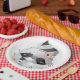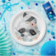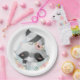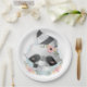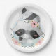 Schöner Aquarellaccoon mit großen niedlichen Augen und Blumendesign Baby Duschpapierplatte , kann leicht einen Namen oder eine Nachricht hinzufügen oder verlassen, wie es ist.