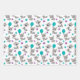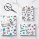 Diese niedlichen Verpackungspapierblätter sind vielseitig und können für Geschenke oder Kunst- und Handwerksprojekte verwendet werden. Das Design bietet hübsche Waschbänke, Sterne und Blume in aquamarinem Blau, lila und schwarz. Das ist perfekt zum Geburtstag.