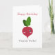 Eine Geburtstagskarte mit einem niedlichen Rettich im Cartoon-Stil auf der Vorderseite und einer individuellen Nachricht im Inneren! Ideal für einen Veggie, einen Bauer oder ein Kind!