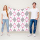 Diese farbenfrohe Basketballmannschaftsfarben mit Fleecedecke für Mädchen zeichnet sich durch ein kariertes, rosa, graues und weißes Muster aus, mit rosa "Nähten", die sich diagonal über die Diamantformen erstrecken, und halbtransparente Basketbälle, die mit den rosa Diamantformen überladen und mit dem Monogramm des Athleten verschmelzen - von katz_d_zynes