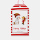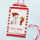Niedlicher Weihnachtsgeschenk-Tag, um die Geschenke Ihrer Familie in diesem Jahr. Das Holiday Tag-Tag hat eine Abbildung eines Mädchens und ihres Gebäude eines Schneemanns. Ideal für die kommende Saison. Illustriert und entworfen von Patricia Alvarez.