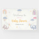 Feiern Sie mit diesem Elephant & Rainbow Baby Shower Sign Banner für Mädchen die Freude eines kleinen unterwegs! Dieses charmante Design mit einem bezaubernden Babyelefant, sanften pastellfarbenen Regenbögen und süßen weiblichen Akzenten ist perfekt, um Ihr kleines Mädchen willkommen zu heißen. Eine schöne Wahl für zukünftige Mütter, die skurrile und herzerwärmende Lieben haben. Einfach mit Ihren Party-Details personalisieren, um einen Sake-Gäste zu schaffen wird schätzen.
