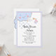 Sweet Baby Dusche Einladung, mit einer niedlichen Grafik eines Storchfliegens mit einem Baby, vor einer glücklichen Regenwolke. Ein blau-rosa Rahmen umgibt die Kanten der weißen Einladung und eignet sich somit perfekt für Jungen oder Mädchen. Personalisieren Sie alle Textfelder für Ihr Baby Dusche Event.