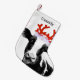 Entzückende Schwarzweiss-Milchkuh, die ein Paar flockige Fakerengeweihe für die Weihnachtsfeiertage trägt! Addieren Sie einen Spaß, festliche Touch zu Ihrem Feiertag, der mit diesem themed Strumpf des lustigen Bauernhofes Weihnachtsverziert.