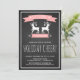 Schneeflocken und Rentier Chalkboard Feier Einladung Individuelle Feier Einladung. Es enthielt zwei rosa Banner, Schneeflocken und Zwillingsrentiere mit Ornamenten.