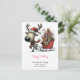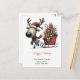 Niedliche Rentiere, die eine Weihnachtsmannmütze tragen und einen Schlitten mit Geschenken auf einer Postkarte ziehen. Text kann geändert werden. AI unterstützte Grafik, die mit kommerziellem Einsatz erworben wurde. Kunstwerk: RedHeronLighthouse