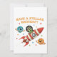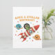 Lassen Sie sich verzaubern für ein weltweites Fest! Dieses lustige und charmante Design besticht durch eine niedliche grüne Alien, die von einem roten und weißen Raketenschiff im Retro-Stil abwindet. Dieses Bild, das durch einen sternenförmigen Kosmos mit freundlichen, lächelnden Planeten strömt, erfasst ein fröhliches, Vintages Ambiente. Der vom 70er inspiriert Schriftart wünscht sich einen "Stellar Birthday!" und ist damit ein idealer Ort für Weltraumliebhaber. Dieses Design eignet sich ideal zum Geburtstag von Kindern oder für Erwachsene, die ein Fan von Science-Fiction, klassischen Cartoon und nostalgischer Ästhetik sind. Klicken Sie auf "Personalisieren", um Ihren eigenen Text hinzuzufügen und diesen Geburtstag wirklich einzigartig zu machen!
