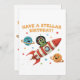 Niedliche Retro-Alien auf dem Raketenschiff | Stel Einladung