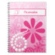 Personalisieren Sie das niedliche Spiral Notebook mit einem hellrosa Retro-Blume und wirbelnden Perlenfolgen, indem Sie Ihren Namen hinzufügen. Ein hübscher kleiner Schmetterling, der zeichne, befindet sich neben dem anpassbaren Namensfeld. Ideal für ein Teenager-Mädchen, das Accessoires in Rosa hübsch, oder ein großartiges zurück in die Schule Geschenk Lieben.
