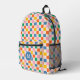 Dieser lustige, stilvolle, individuelle Rucksack mit einem Schachbrettmuster in Retro / Vintagen Farbtönen in leuchtenden Orange, Blau, Kelly Green, Gelb, Rosa und Creme. Eine erste Textvorlage für Monogramm ist dabei enthalten. Verwenden Sie sie, um Ihren Rucksack zu personalisieren oder ihn und den Kreis zu entfernen, wenn Sie kein Monogramm bevorzugen. Dieser niedliche, farbenfrohe Rucksack ist perfekt für den Rücken in die Schule ! *Originelle Kunstwerke von Tracey Khalei / Orabella Prints.