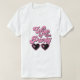 Ein niedlicher und sonniger Junggeselinnen-Abschied-T - Shirt für die Braut mit der "Ehefrau des Party" in einem rosa Retro-Stil der 70er Jahre und einer herzförmigen Sonnenbrille. Ein passender "Life of the Party'" T - Shirt steht für die Bachelorette-Mannschaft zur Verfügung.