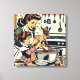 Niedliche Retro-Mama und Einzelbacken Leinwanddruck