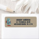 Die Rücksendeadressen-Aufkleber zeigen eine niedliche Abbildung eines Retrororoboters in hellblau und Ihren Namen und Ihre Adresse in marineblau geschriebenem Set vor einem bräunlichen Hintergrund.