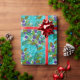 Niedliche Retro Vintagen grünen Blätter Urlaub Aqua Packpapier. Feiern Sie die Ferien und Weihnachten mit einem festlichen, fröhlichen, bunten Packpapier auf all Ihren Geschenken.