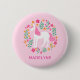 Niedliche Rosa Einhorn-Blume Name-Tag Button
