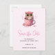 Niedliche rosa Eule im Cup Save the Date Einladungspostkarte