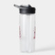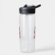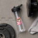 Wasserflasche mit einem bezaubernden Bild einer Eule, die in einer Tasse sitzt. Hört herumschwebend und eine Single-Rose am Ende der Tasse platziert.