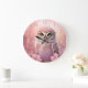 Niedliche, rosa, grasende Eule Große Wanduhr