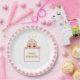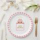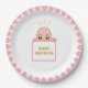 Papierteller gerahmt mit niedlichen rosa Herzen und ein hübsches Baby mit Babyduschtext. Baby Shower Text kann personalisiert werden,