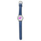 Kinderuhr aus Edelstahl mit blauem Lederarmband