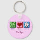 Peace Liebe Kühe Schlüsselanhänger. Hübsches rosa Kuhgeschenk mit einem Friedenszeichen, Herz und einer niedlichen Kuh.