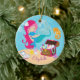 Personifizieren Sie die datierte niedliche rosa Meerjungfrau, die ein Delphin personalisiertes Weihnachtsverzierungs-Set auf einem Blasenhintergrund des blauen Wassers mit einem Schatzkasten u. -Seepferd hält. Besichtigen Sie unser Geschäft, um diese entzückende Meerjungfrau in einer Vielzahl der Haar- u. Kleidungsfarben anzusehen.