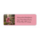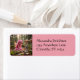 Eine niedliche rosa-haarige Fee mit braunen Flügeln und ein Kleid aus rosa Blume, genießt ein Picknick in der Waldmitte mit ihrer Freundin, einer grauen Maus, mit Bäumen und Pilzen im Hintergrund.