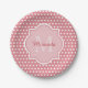 Niedliche rosa Polka-Punkte mit Monogramm und Name Pappteller