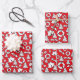 Niedliche Rot-Schwarz-Weihnachtsbaumen Kränze Gloc Geschenkpapier Set