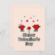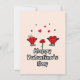 Niedliches Rotherzenpaar mit rote Rose für den Valentinstag auf hellrosa Hintergrund