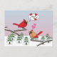 Niedliche Rote Kardinal Liebe Winterlandschaft Postkarte