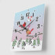Niedliche Rote Kardinal Liebe Winterlandschaft Quadratische Wanduhr