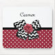 Das Mousepad mit niedlichem Schwarz-Weiß-Polka-Dot-Mousepad mit einem Zickzack Bogen in Schwarz-Weiß und einer schicken roten Band-Rose. Personalisieren Sie dieses rot-schwarze Retro trifft modernes Design, indem Sie den Namen Ihres Teenagers. Flachdruckbild, KEIN tatsächliches Rosettenband und Bogen.