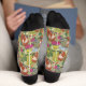 Niedliche farbenfrohe Retro-Blume Vögel und rote Füchse illustrieren in einem nahtlosen Muster Männer kleiden Socken. Original-Kunstwerk von Caroline Bonne Müller
