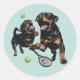 Niedliche Rottweiler Hunde Tennis spielen Runder Aufkleber