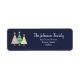 Einzigartiges, niedliches, navy-blaues Weihnachtsschild mit farbenfrohen Kiefernbäumen und modernem Drehbuch.