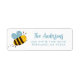 Fügen Sie Ihrer Geburtstagsparty oder Babydusche eine Touch Kuschel mit diesen bezaubernden Bienen-Rücksendeadressen-Aufklebern hinzu. Die Etiketten verfügen über eine fliegende Hummel aus Cartoon. Personalisieren Sie die Etiketten mit Ihrem Namen und Ihrer Adresse.