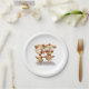 Schön gestaltete Teller mit einer Illustration von zwei braunen Scheuneneuulen. Ideal für zwei Babyduschen Party und Geburtstage. Illustriert und entworfen von Patricia Alvarez.