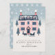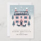 Wünschen Sie Ihren Lieben ein fröhliches Weihnachtskartendesign mit einem niedlichen rustikalen Pastellhaus in winterlicher Umgebung. Deckt den Seitenhintergrund von Freepik.