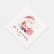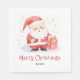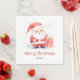 Papierservietten mit einer Abbildung eines niedlichen Weihnachtsmannes, der eine Geschenkboxen mit dem Text "Frohe Weihnachten" in einem roten, skurrilen Schriftart unten hält.