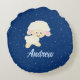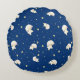 Rundkissen mit niedlichen Schafen, Mond und Sternen auf dunkelblauem Hintergrund