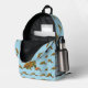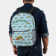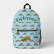 Die Tasche im Design zeigt das Bild einer Schildkröte mit Babyschildkröte. Das Muster dieses Bildes wird durchgängig angezeigt. Der Hintergrund ist blau, um den Eindruck von Wasser zu vermitteln. Das Wort "Rechtschaffene!" wird als grüner Bogen angezeigt und ist anpassbar.