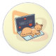 Illustration der Niedlichen schlafenden Computerkatze mit geometrischen Formen des Mitteljahrhunderts, den roten Herzen und der Textgestaltung des "Purfect Day"
