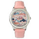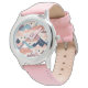 Kinderuhr aus Edelstahl mit rosa Lederarmband