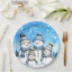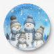 Niedliche Schneefamilie im Schnee Pappteller